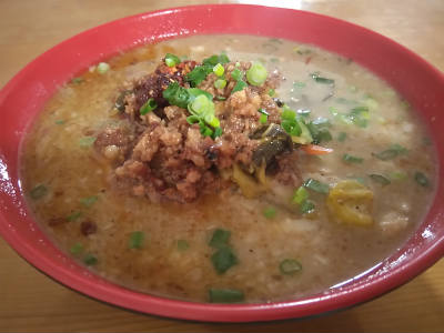 練りごま+落花生のスープに肉味噌風のトッピングが非常にマッチ