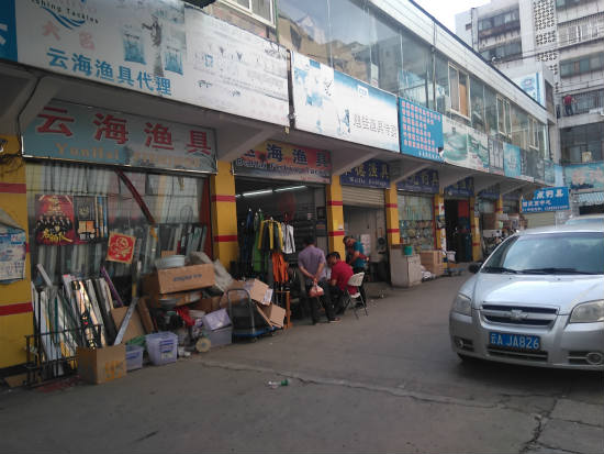 時間つぶしに中国南西部最大と言われる昆明の釣具市場を訪ねてみました