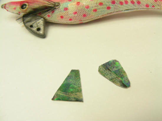 これをエギやルアーに張ったりして集魚効果を高めます