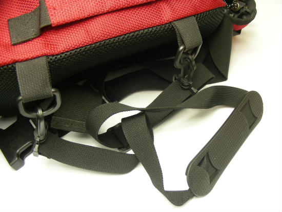 中身を入れすぎて重くなる場合、肩からも補助できるショルダーベルトもあり
