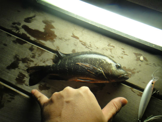 街灯下の光が届くかどうかの水深を、バイブレーションで狙いなんとかヒットも