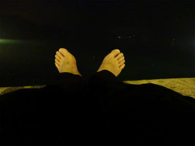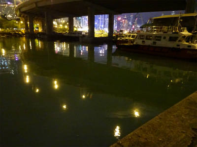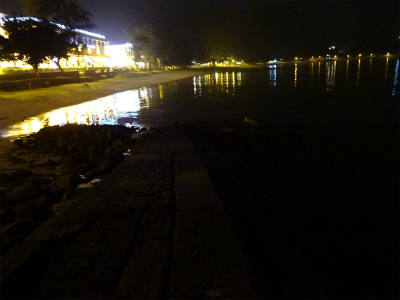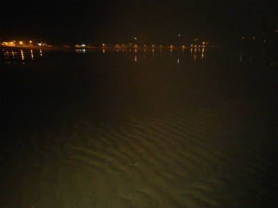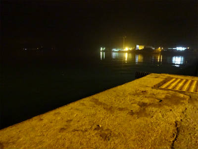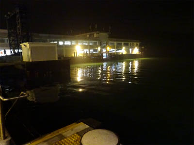 ついた埠頭も船着場には明かりがあるもののだーれもいない。釣り人もいない