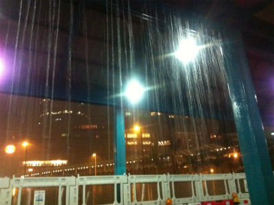 運悪く、夜21時過ぎに香港のイミグレを通過するころにはポツポツと雨が