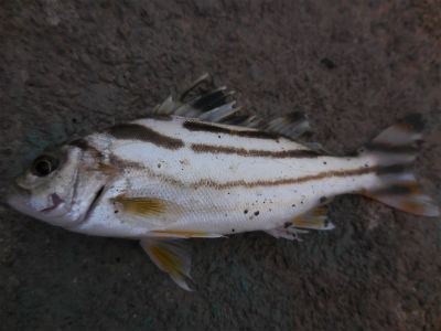 いきなり釣れたのはコトヒキ、15センチほどでしたが元気な魚でした