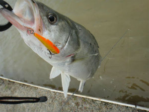 彼のシーバスはハデに2mほど水面ウォークされてバレてしまい