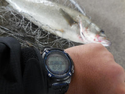 タモも届かない高さがあり、水深も予想外の14-16m、大潮なので流れも速い速い