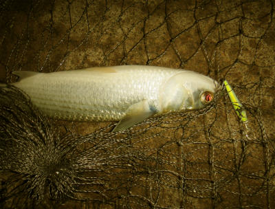さすがにタモなしで抜けないので、対側のヘチ師の所へ引いて行き取り込んでもらいました