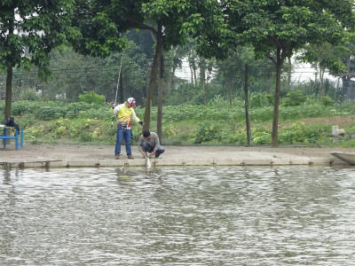 終了後、ラオバンに頼まれてエサの池からバラとシーバスを釣ってあげたというおまけもあり