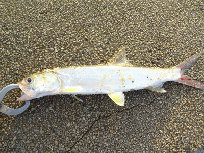 ティップ部がない棒ロッドなので手元にガシガシ魚の首フリ衝撃が伝わって変に気持ち悪い(笑)