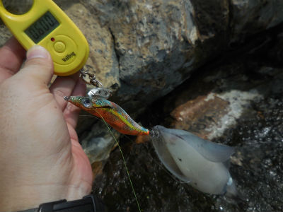 30分ほどいろいろ試し、ネガカリが少ない事を確認できたので本気(?)の旧エギ王Qを投入