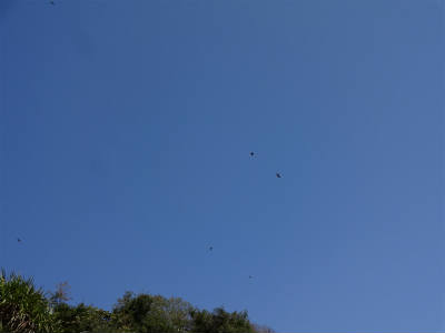 写真の小さな黒い点はトンビです、鳴きながら数羽が空を徘徊