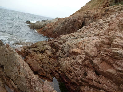 がけを越えなければならないのですが、越えた所でやっと見えてくる磯場