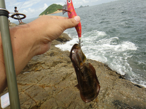 VS アオリイカさぁ、香港連続釣行、最初はアフィの提案のボートでのエギングです