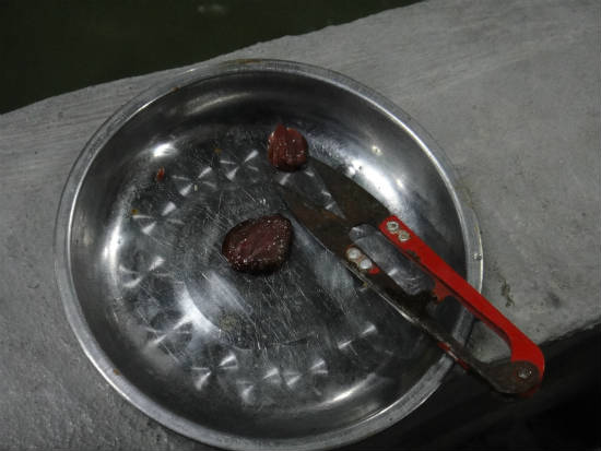 エサは例によって鶏の心臓
