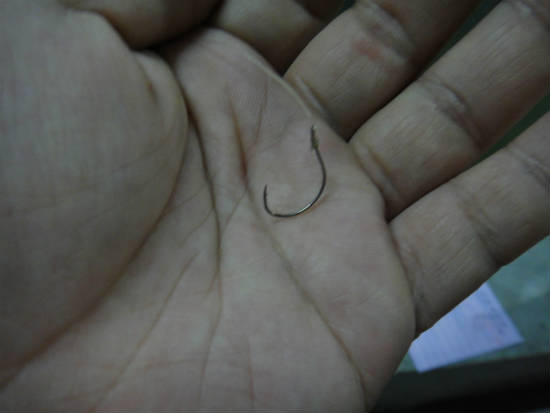 えらくふところの広い、変わった針を使用、この針形状は苦戦の予感