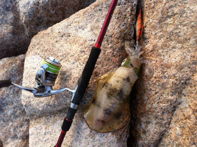 今回は日本で買ったばかりのエギングロッドを初投入、