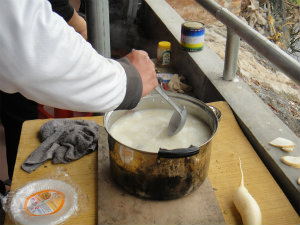 お昼は魚のお粥です