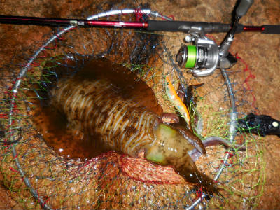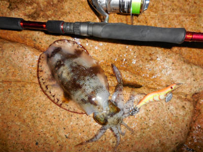 今回は日本で買ったばかりのエギングロッドを初投入、