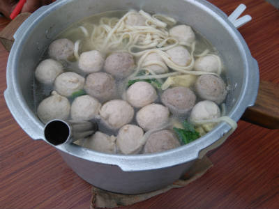 魚肉団子にうどんいれただけのシンプルなもの、気温30度で鍋物とはなんとも...