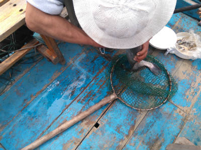 そのうち養殖主さんが船を使うというのでおかっぱりになりましたが