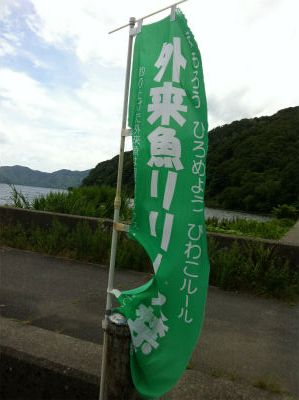 リリース禁止のノボリがでてましたが、魚の回収ボックスはみかけませんでした