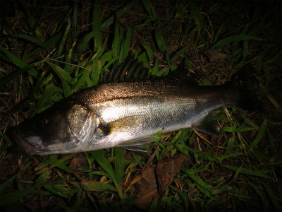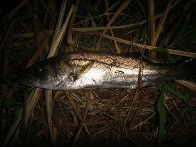 僕の立ち位置は背の高い草がモサモサで、抜き上げたシーバスが行方不明になって一苦労